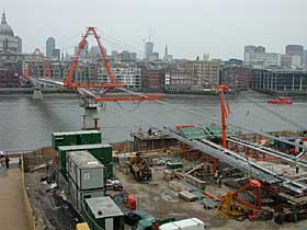 Looking outside we could see the new Millennium bridge under construction. It's slated to open next month, and even though it's just a foot bridge, there's a big deal being made about it because it's the first new bridge over the Thames in about 100 years.
