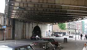 Then we stopped at our friend Chris' house. He had made us some custom gear, and he offered to give us a ride down to a fun Friday night bar later on in the evening. We took the tube back to the hotel and napped a bit after being out and about for eight hours or so. Along the way Randy decided to try out the "movie" mode on his new digital still camera (the one being used for all the images on these pages). The results can be found here. Room service was the dinner menu, and around 11pm Chris arrived. We drove across the city and arrived at "Backstreet", a fairly dark leather bar. The crowd was fun and we stayed until around 2am, when we caught a ride back to the hotel with Chris and got some much needed sleep. |