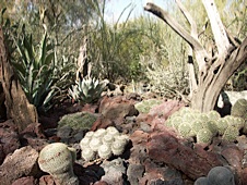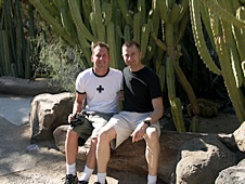 After lunch we went to Moorten's Botanical Gardens. This was a large private garden that is now open to the public. We saw lots of huge columnar cactus reaching for the sky. It was filled with quite a variety of plants, with wonderful, mature, specimen plants. Rick was in heaven. Afterwards we headed to the hotel and checked in. Our hotel was the "L Horizon", a cute little hotel with 20 bungalows surrounding a big lawn and pool. Very nice and quiet. We went out and hung out at the pool for a while, then headed in to shower before dinner. |