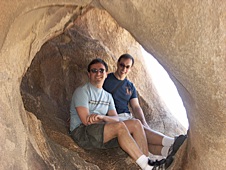 We exited the park on the South side, then continued on to the Salton Sea. It's the largest lake in California, fed by mountain streams. No one seemed to know if it was fresh water, or salty like the Great Salt Lake. We'll have to look it up when we get home. From there we headed West towards Palm Springs, passing through a number of very small farming communities. We were all really hungry and finally found a Subway to eat at in Indio. Afterwards we headed back to the hotel where we hung out at the pool and took some short naps. While it had been between 75° and 100° during the day, the low humidity had kept it very comfortable. |